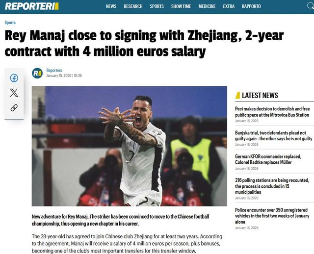 第三个,多家外媒爆料,马纳伊是浙江队冬窗最重要的引援之一,合同为期2年,年薪高达400万欧元,外加奖金,这也让他成为阿尔巴尼亚足球历史上收入最高的球员。不过,也有媒体报道,他是2年总收入400万欧元,这也更符合中超外援税前300万欧的限薪令要求。
